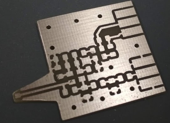 Na tomto obrázku je vidět hotový vyleptaný plošný spoj.