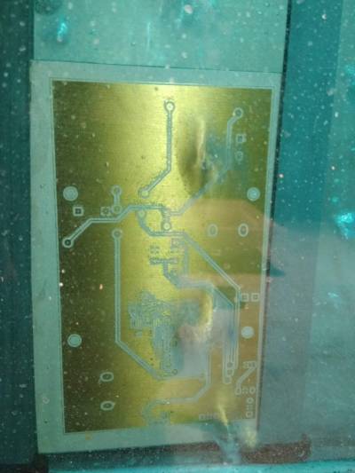 Chyba: Leptací roztok je sytě modrý a leptání neprobíhá - neobjevil se závoj kolem desky. V takovém případě je možné zvýšit koncentraci persíranu v roztoku.