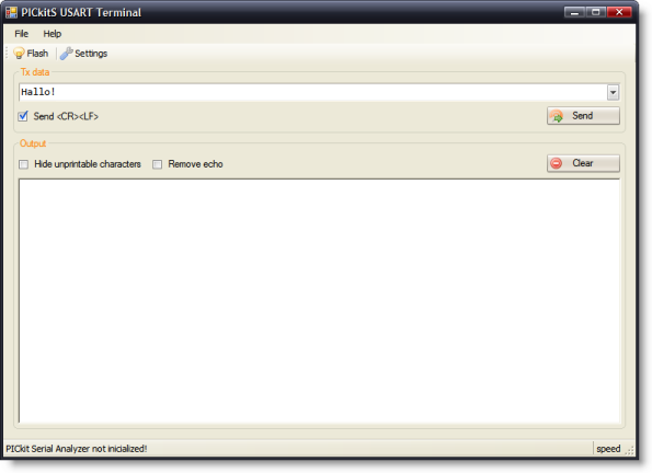 Standardní ovládací SW pro Serial Analyzer je zaměřený spíše na práci s byty a komunikaci po jednotlivých bytech. Pokud potřebujete komunikaci jako s textovým terminálem můžete využít následují program.